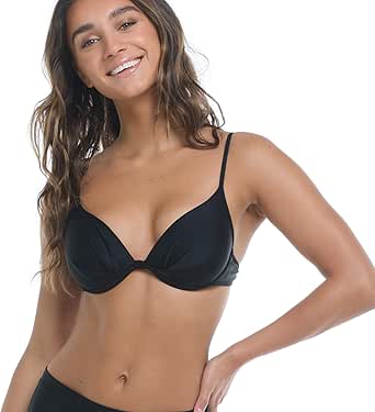 Body Glove Women’s Standard Smoothies Greta Solid Molded Cup Push Up Underwire Bikini Top Swimsuit, Black, Medium