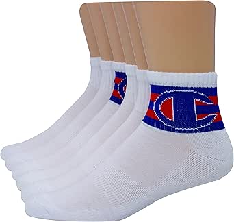 Champion Men’s Double Dry Moisture Wicking Ankle Socks 6, 8, 12 Packs Availabe, White with Buckle C-6 Pack, 6-12