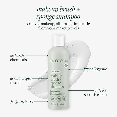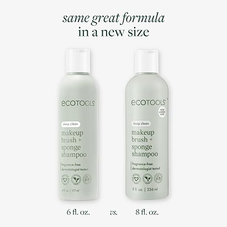 EcoTools Cleanser Shampoo for Makeup Brush/Sponge/Puffs, Remove Makeup & Impurities, Fragrance-Free, No Harsh Chemicals, Vegan & Cruelty-Free, 6 fl.oz./177 ml, 1 Count