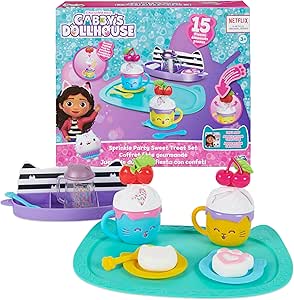 Gabby’s Dollhouse, Sprinkle Party Sweet Treat Set, Pretend Play Kitchen Hot Cocoa Party Set with Fruit & Sprinkles, Kids Toys for Girls and Boys 3+