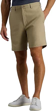 Haggar Men’s Cool 18 Pro Straight Fit Flat Front 4-Way Stretch Expandable Waist Short, Khaki, 34