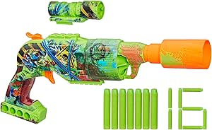 NERF Zombie Driller Dart Blaster, 16 Nerf Elite Darts, Rotating 5 Dart Cylinder, Removable Scope, Outdoor Games, Ages 8+