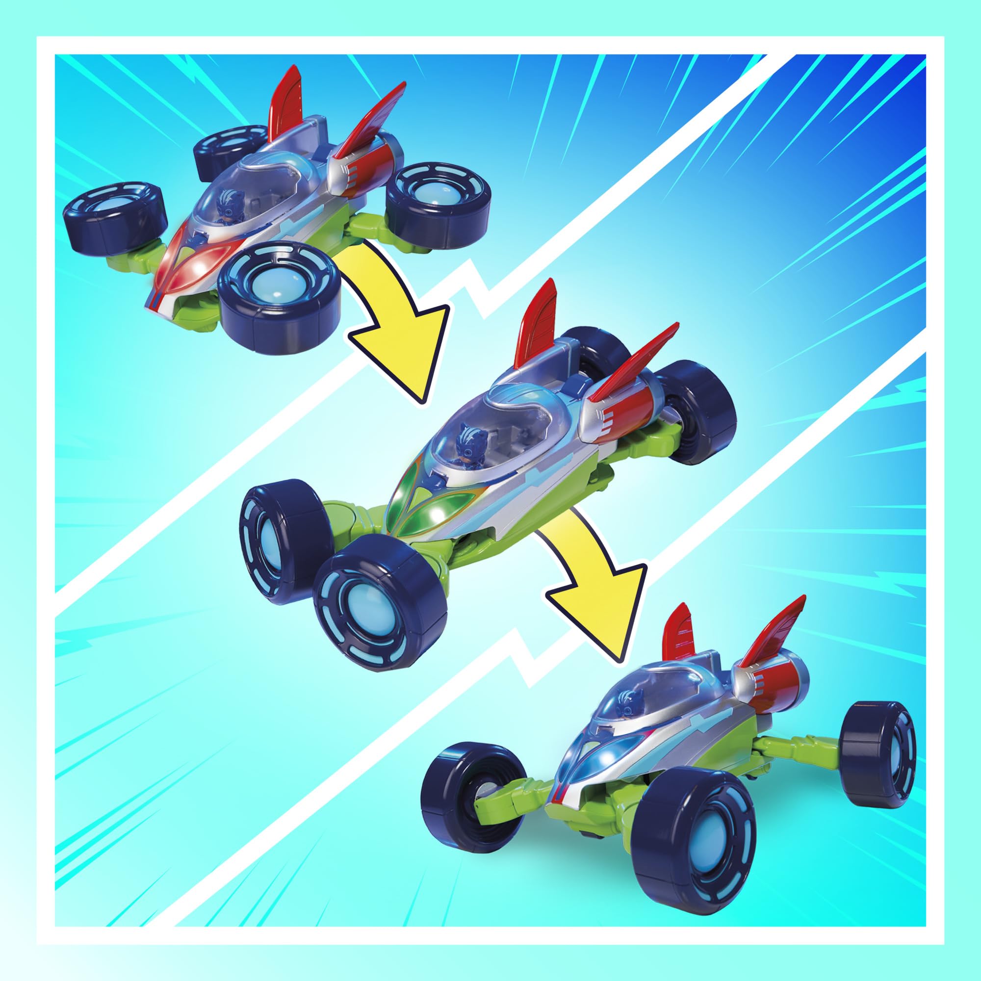 PJ Masks Power Heroes PJ Hero Vehicle, Convertible Hero Flash Vehicle of Power Heroes with 3 Modes, Lights and Sounds
