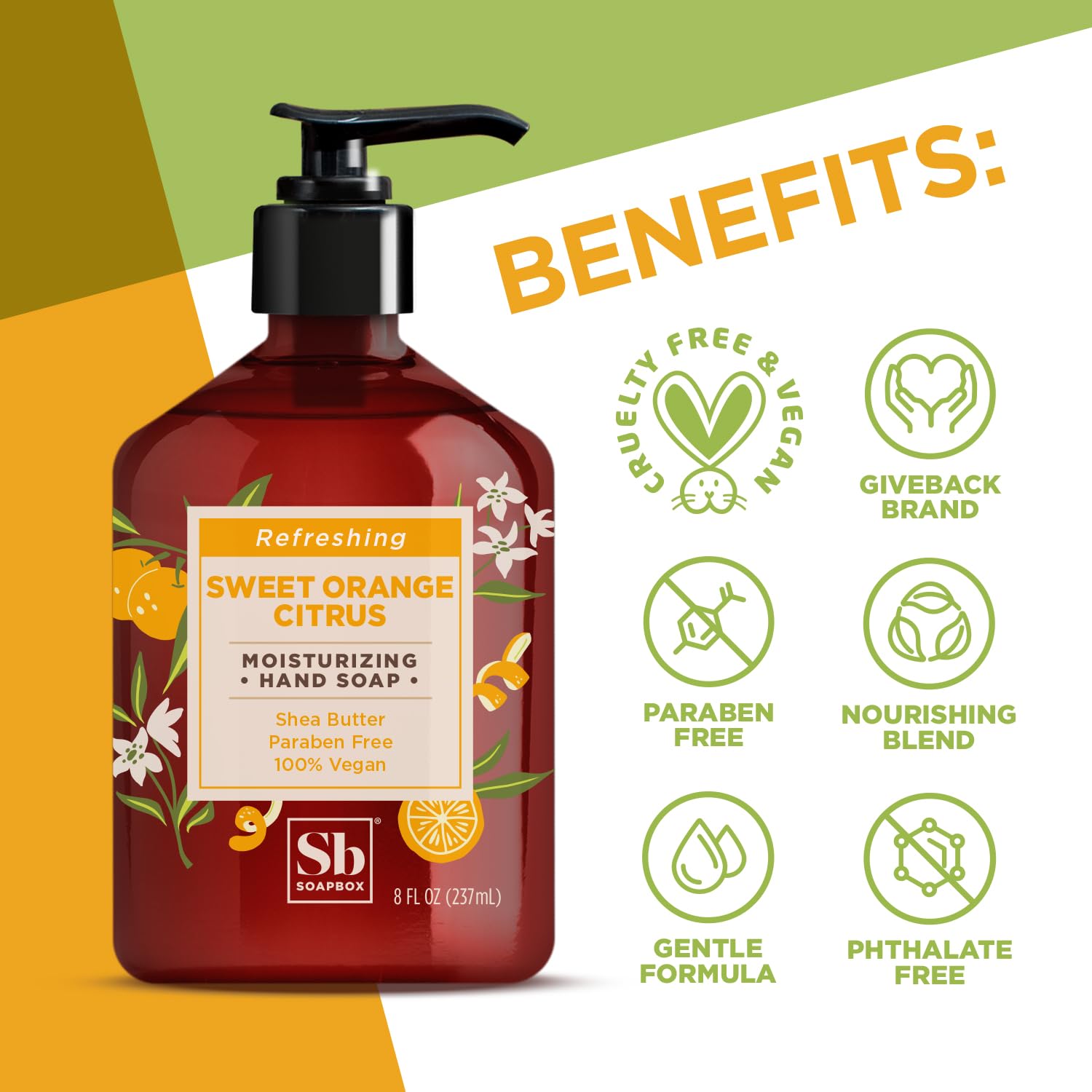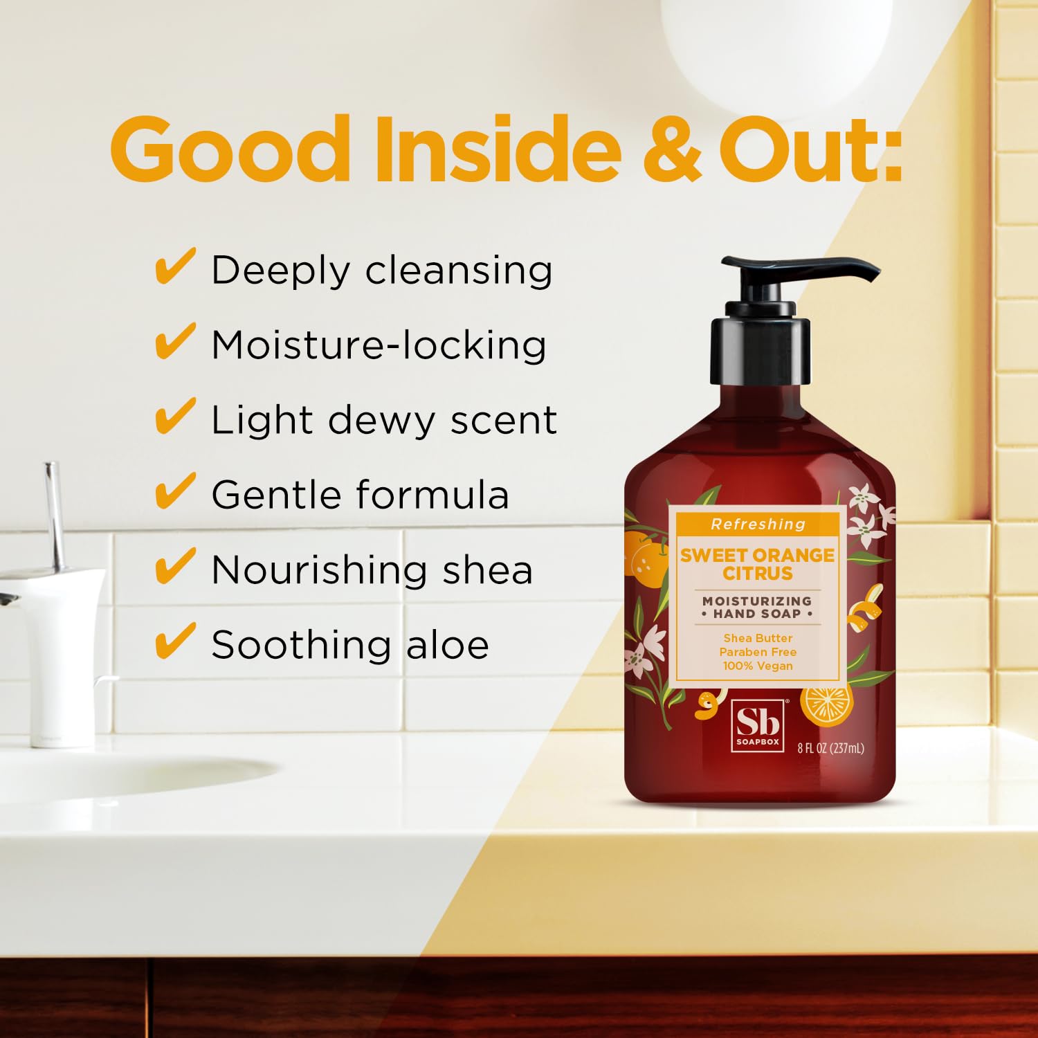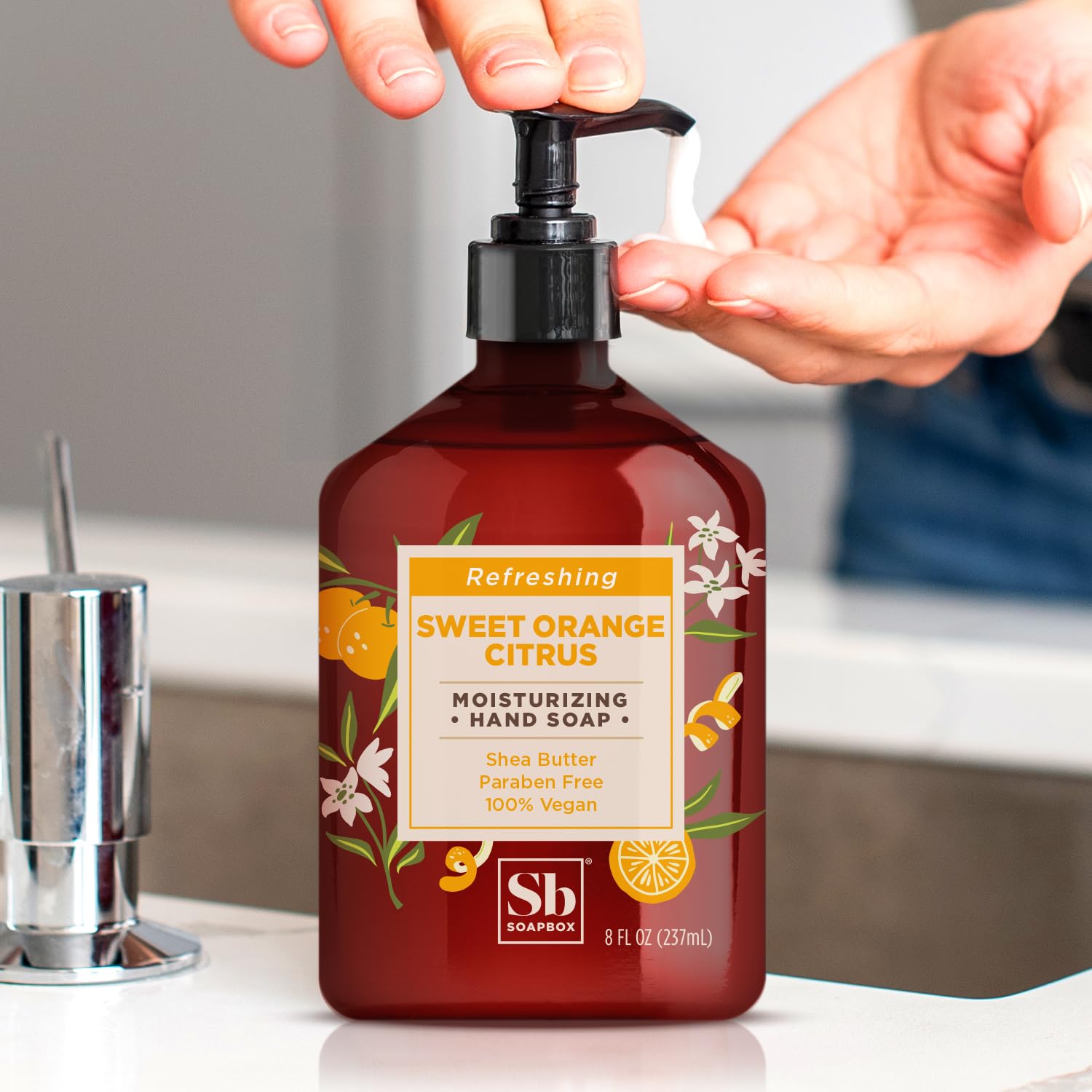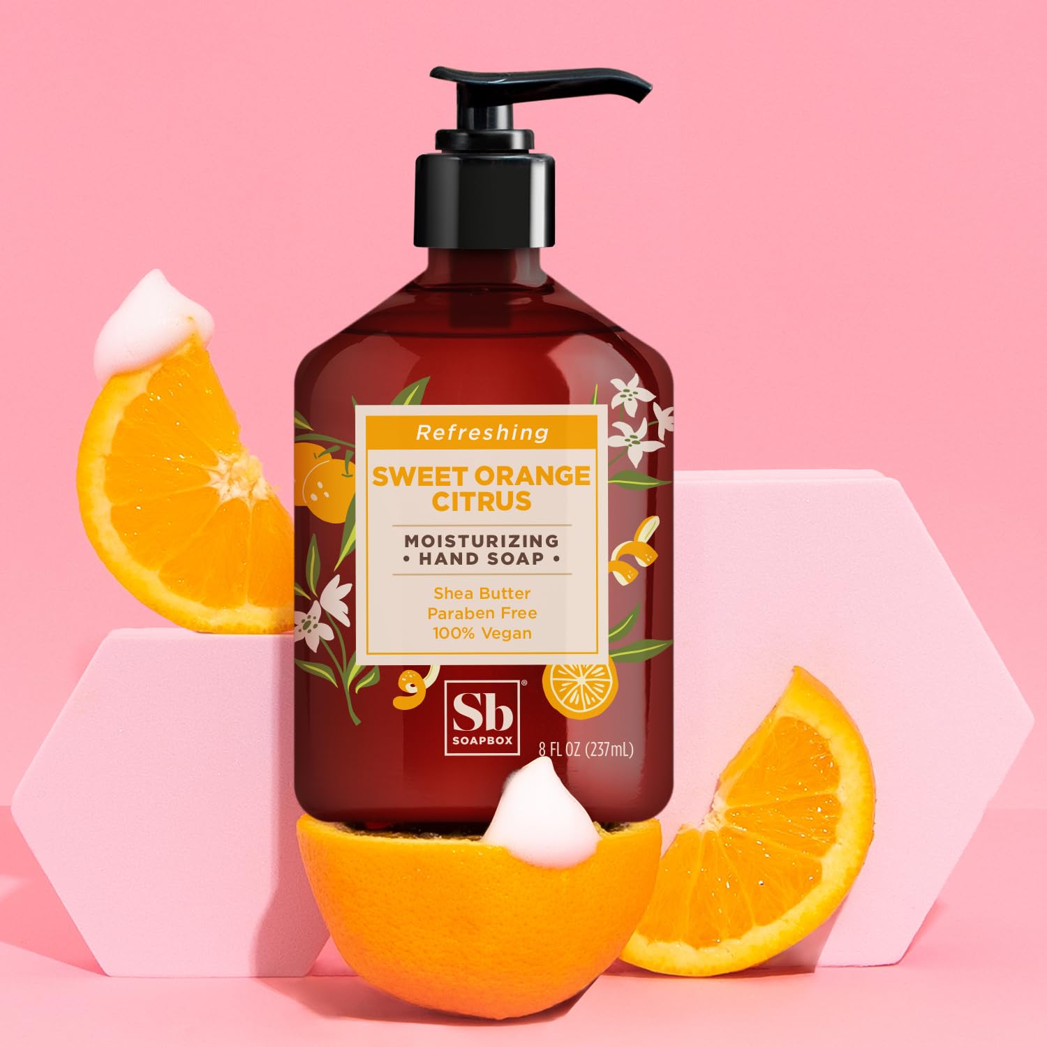 Soapbox Hand Soap, Sweet Orange Citrus Moisturizing Hand Soap for Bathroom & Kitchen with Pump Dispense, (6 Pack, 8oz Each)