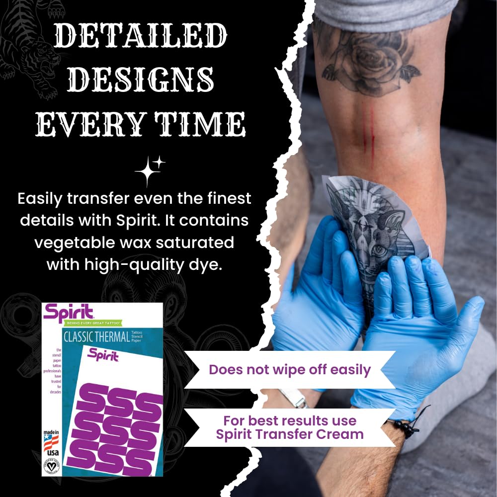 Spirit® Classic Thermal Tattoo Transfer Paper 8.5″ X 11″ – 100 Sheets, Tattooing Stencil Paper, Proudly made in the USA