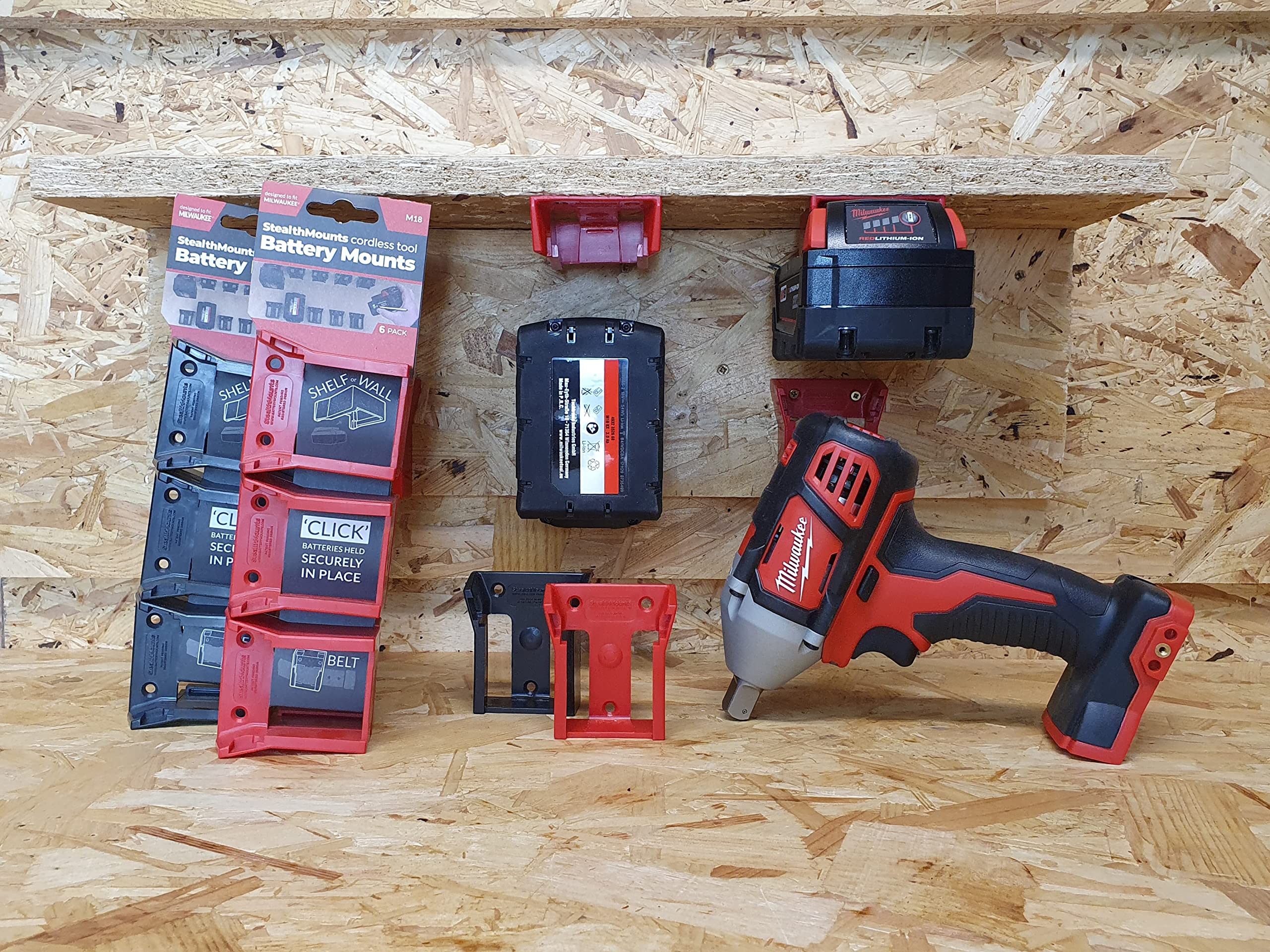 Stealthmounts Battery Mount Milwaukee M18 Red 6Pk