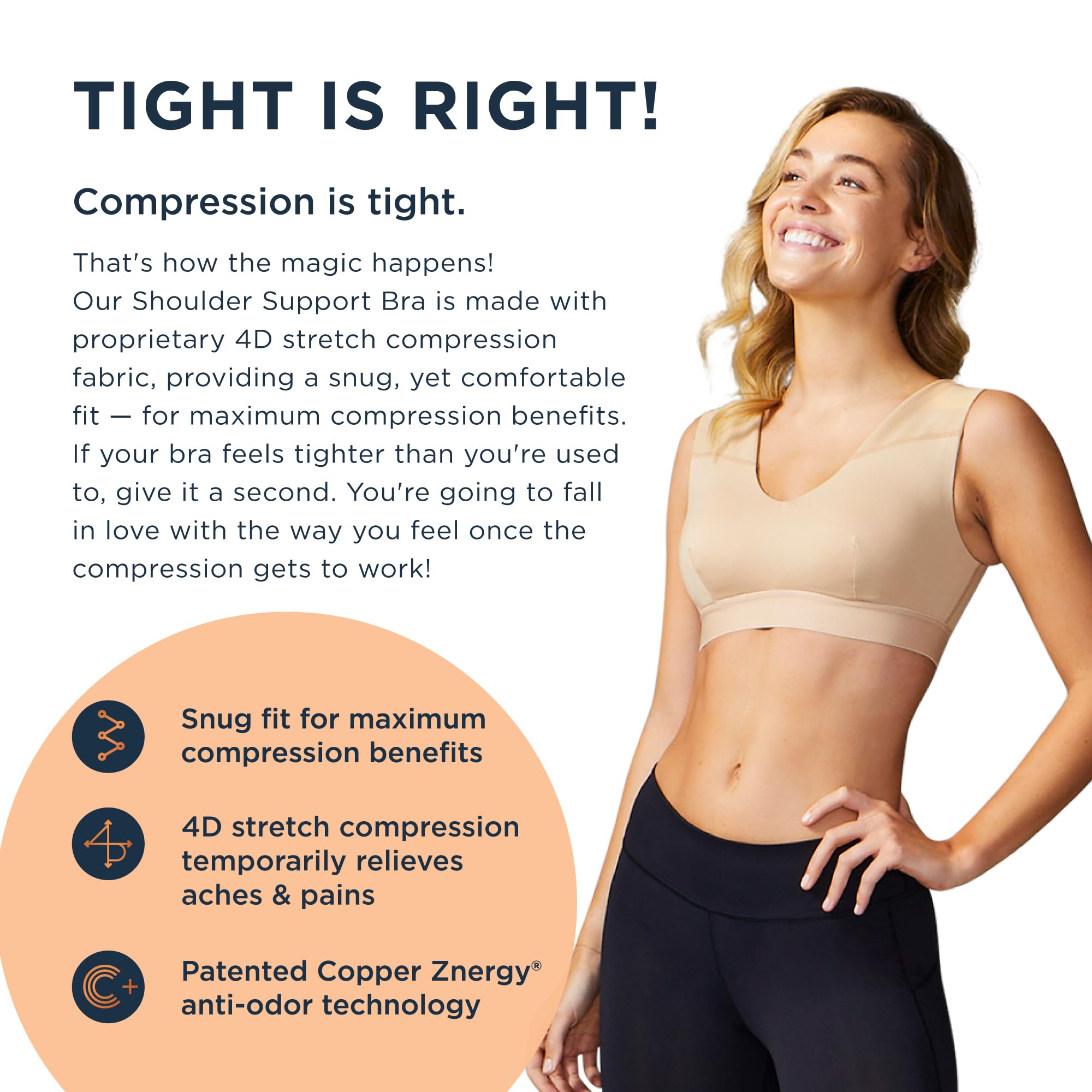 Tommie Copper Shoulder Support Bra, Posture Corrector for Women, with Back Support, Posture and Compression for Women, Back and Shoulder Support Bra – Nude – M