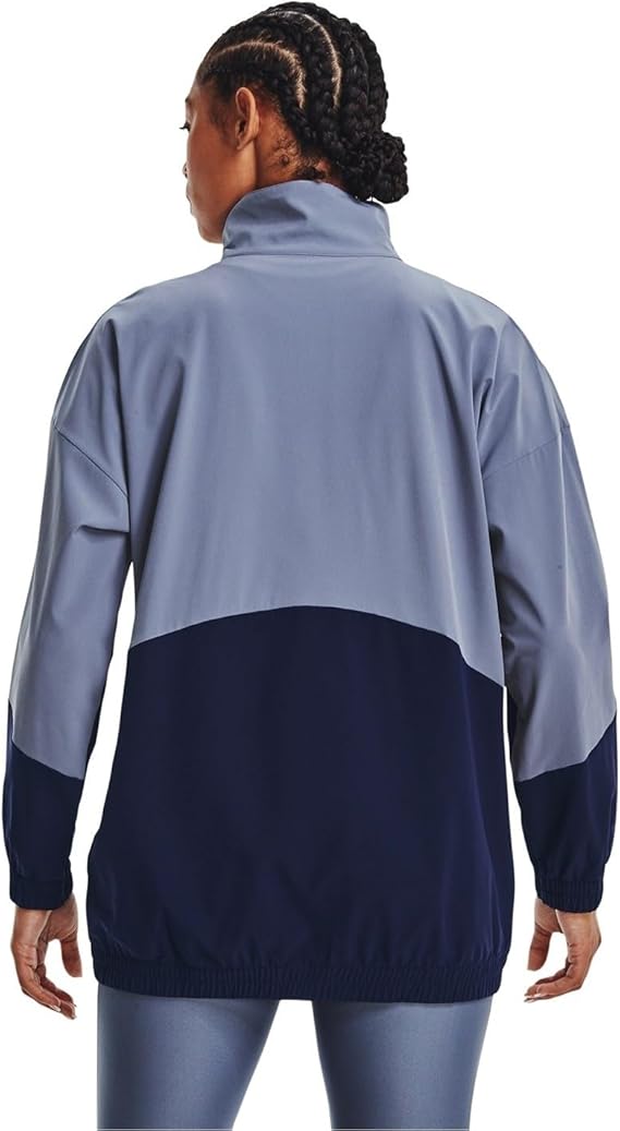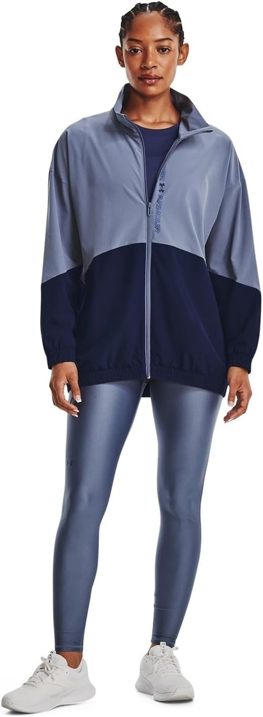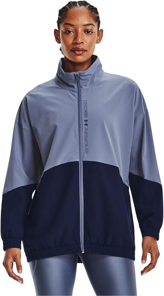 Under Armour Women’s Woven Full Zip Oversized Jacket, (767) Aurora Purple/Midnight Navy/Midnight Navy, Small