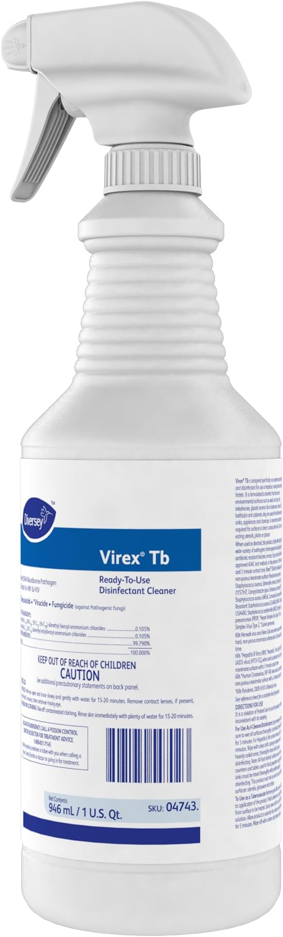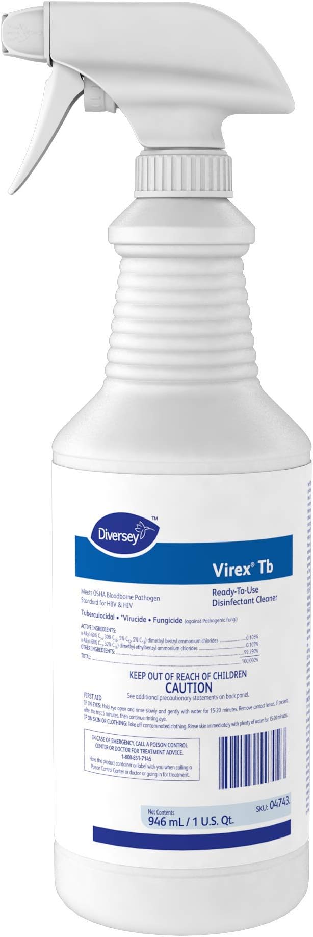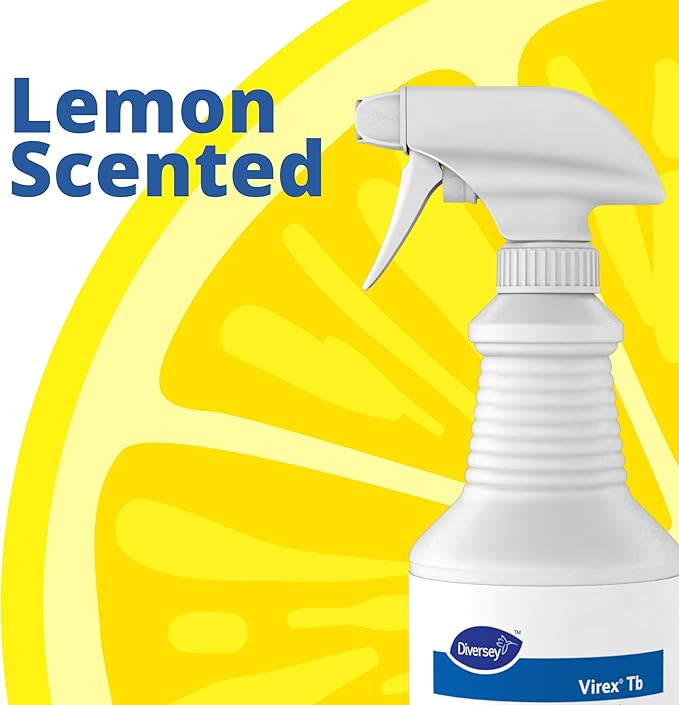 VIREX Diversey Tb 04743. Disinfectant Cleaner, Hospital Use Tuberculocidal, Virucide, Fungicide with Lemon Scent, Ready-to-Use Liquid, 32-Ounce (Pack of 12 plus 1 Reusable Sprayer Nozzle)