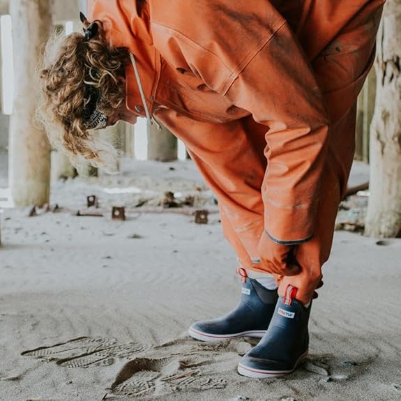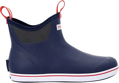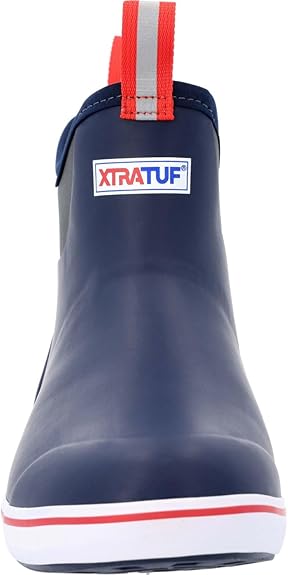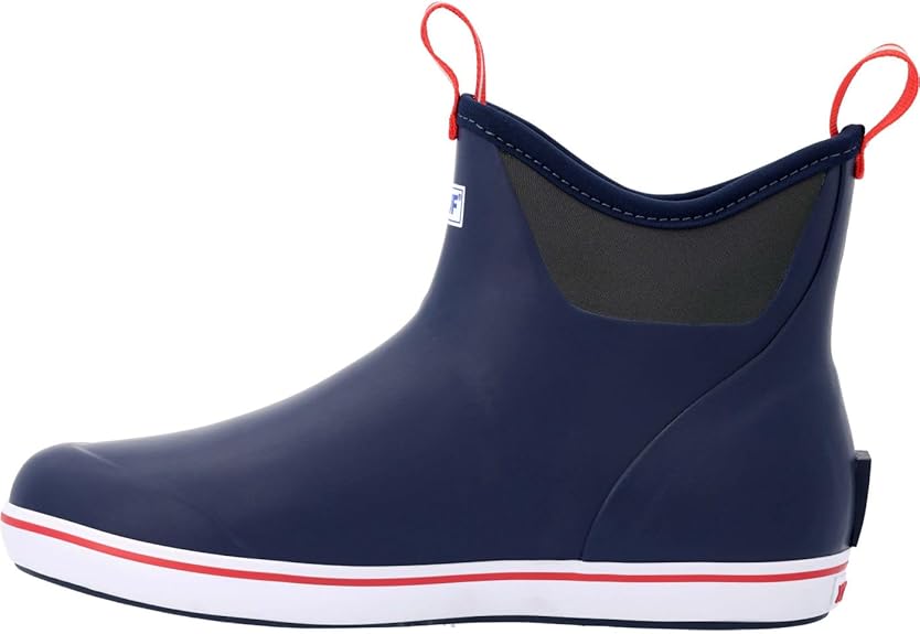 Xtratuf Men’s Fishing Rain Watertight Anglers Rubber Chevron Pull Tabs Ankle Deck Boots, Navy & Red, 10